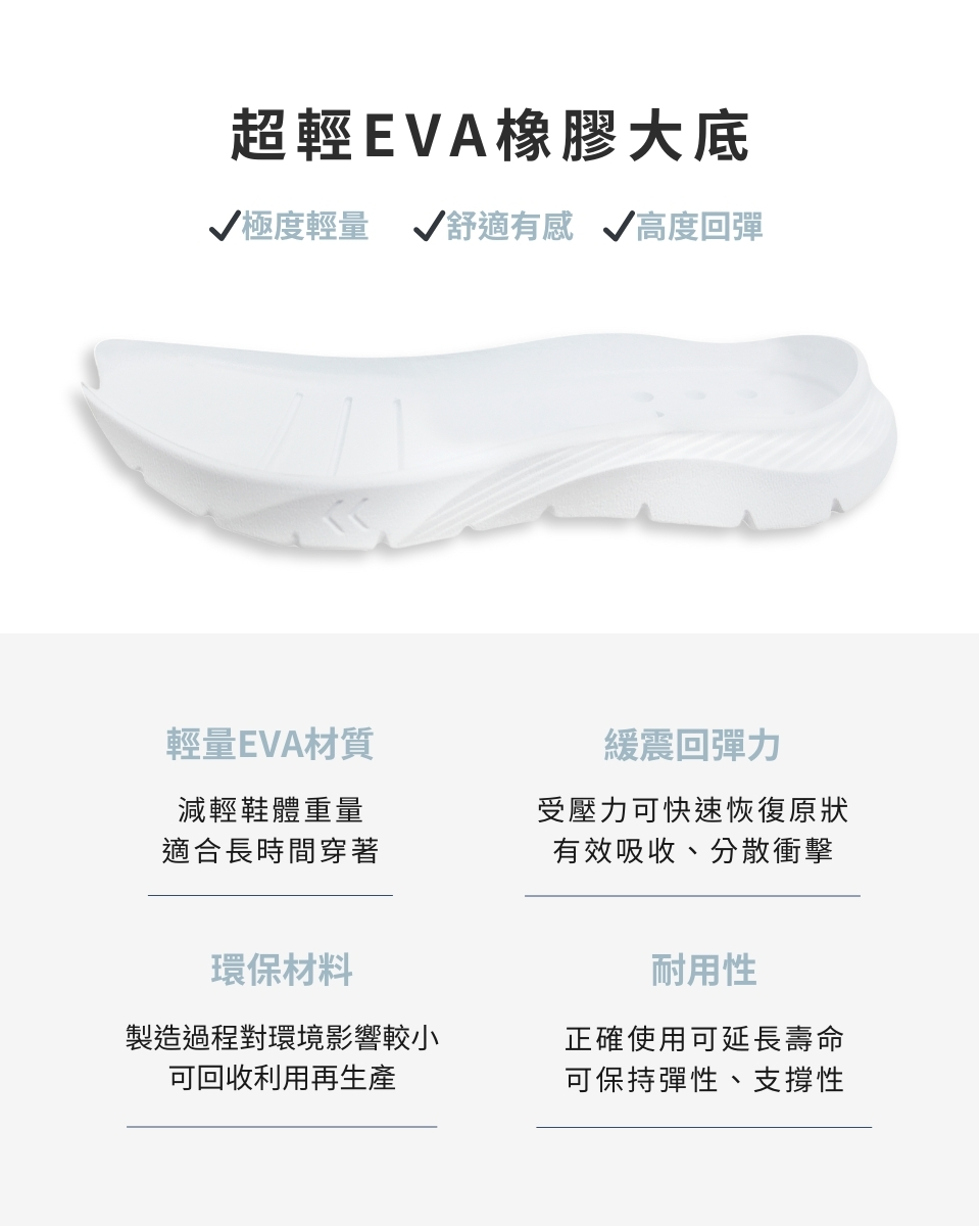 - 超輕EVA橡膠大底 ,舉手投足輕盈有活力